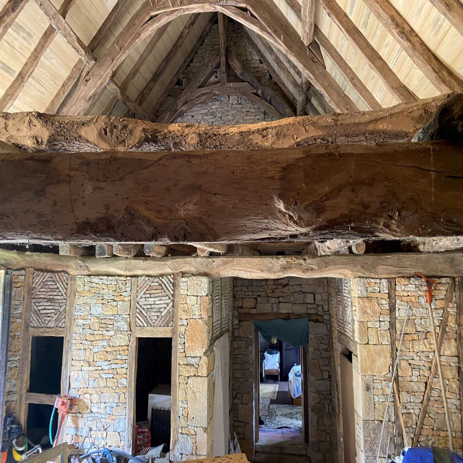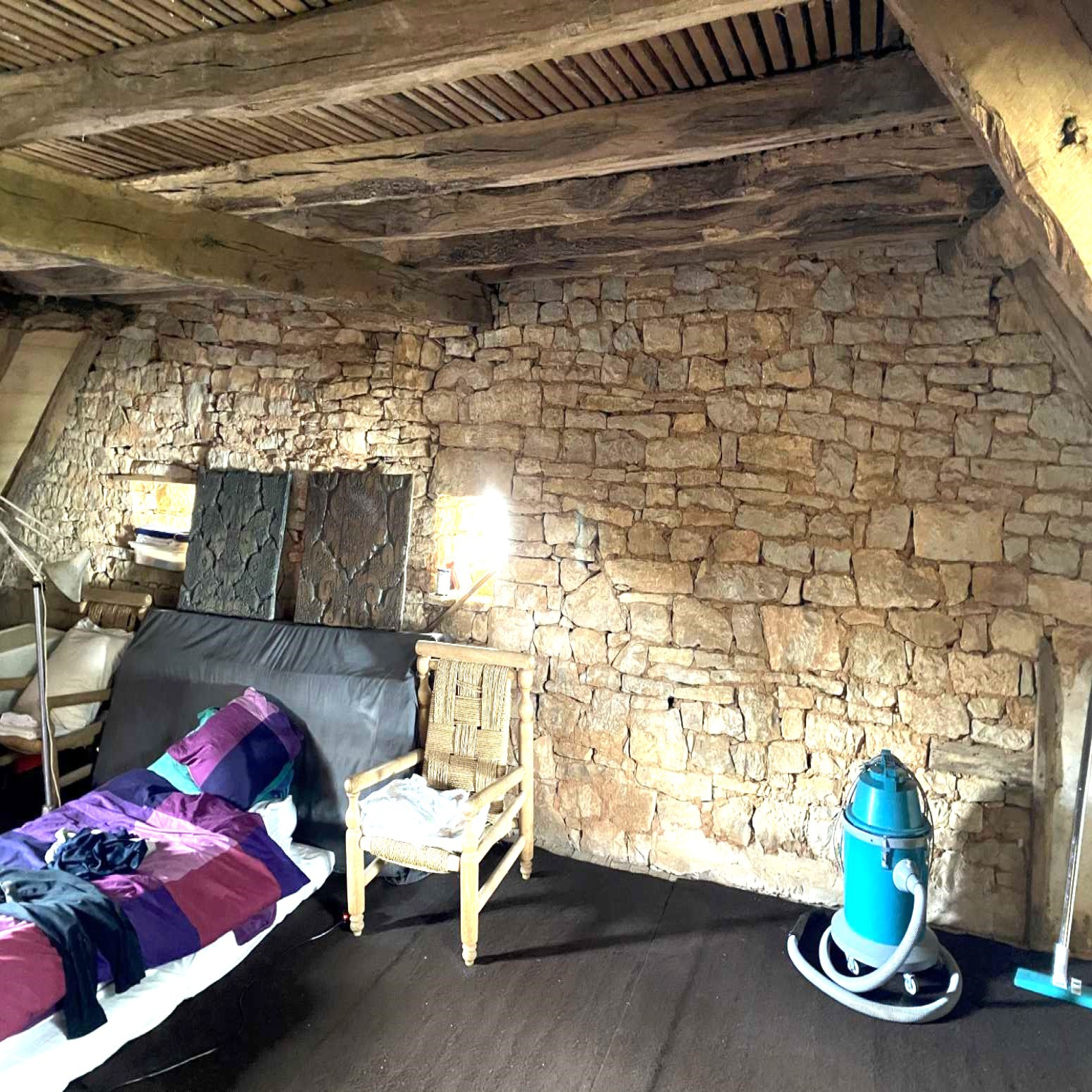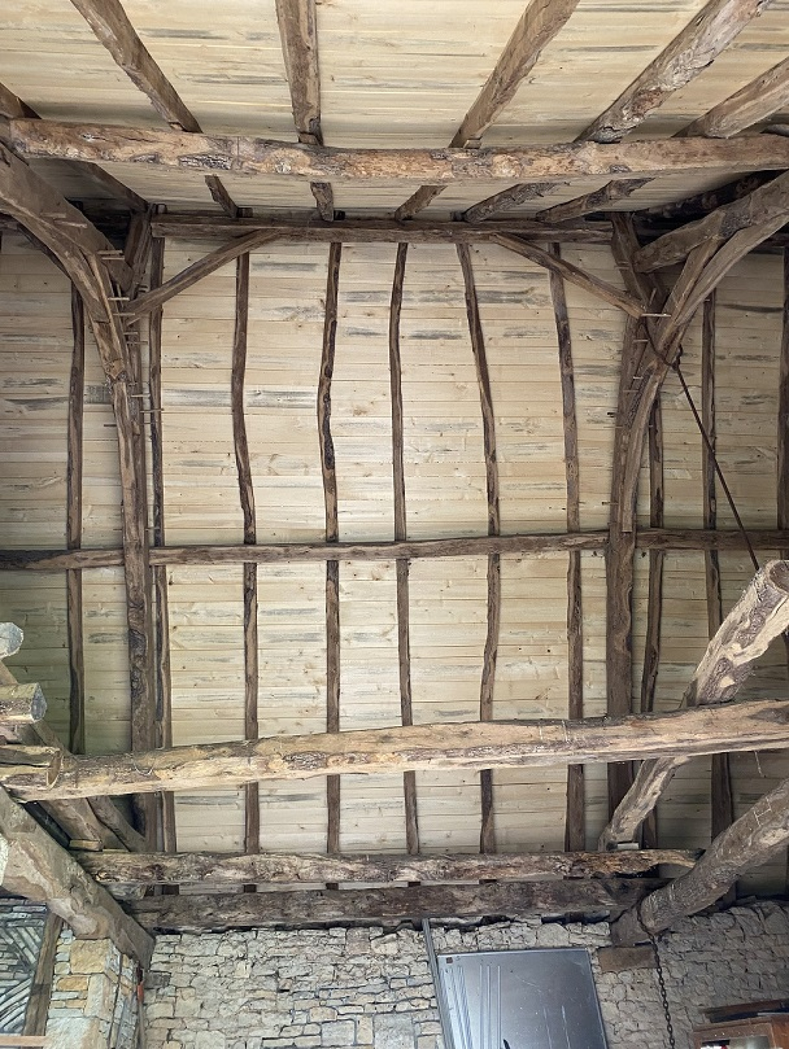 La toiture a été refaite (tuiles plates de pays, très jolies voliges en peuplier), ainsi que les joints des pierres de la grande pièce de RDC.