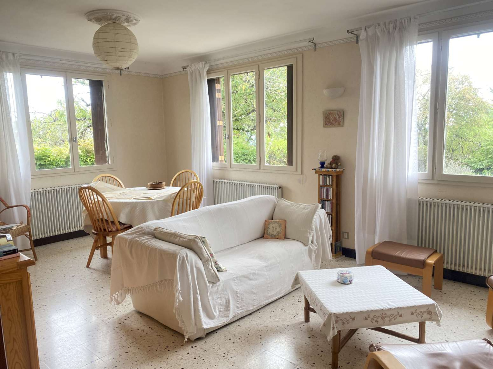 Maison en brique de la fin des années 1960, saine, bien entretenue, construite sur vide sanitaire et sur rocher, charpente traditionnelle, CC Fioul + cheminée, travaux de modernisation à prévoir.
