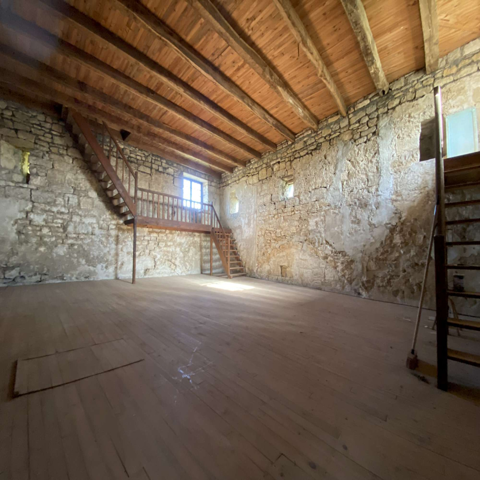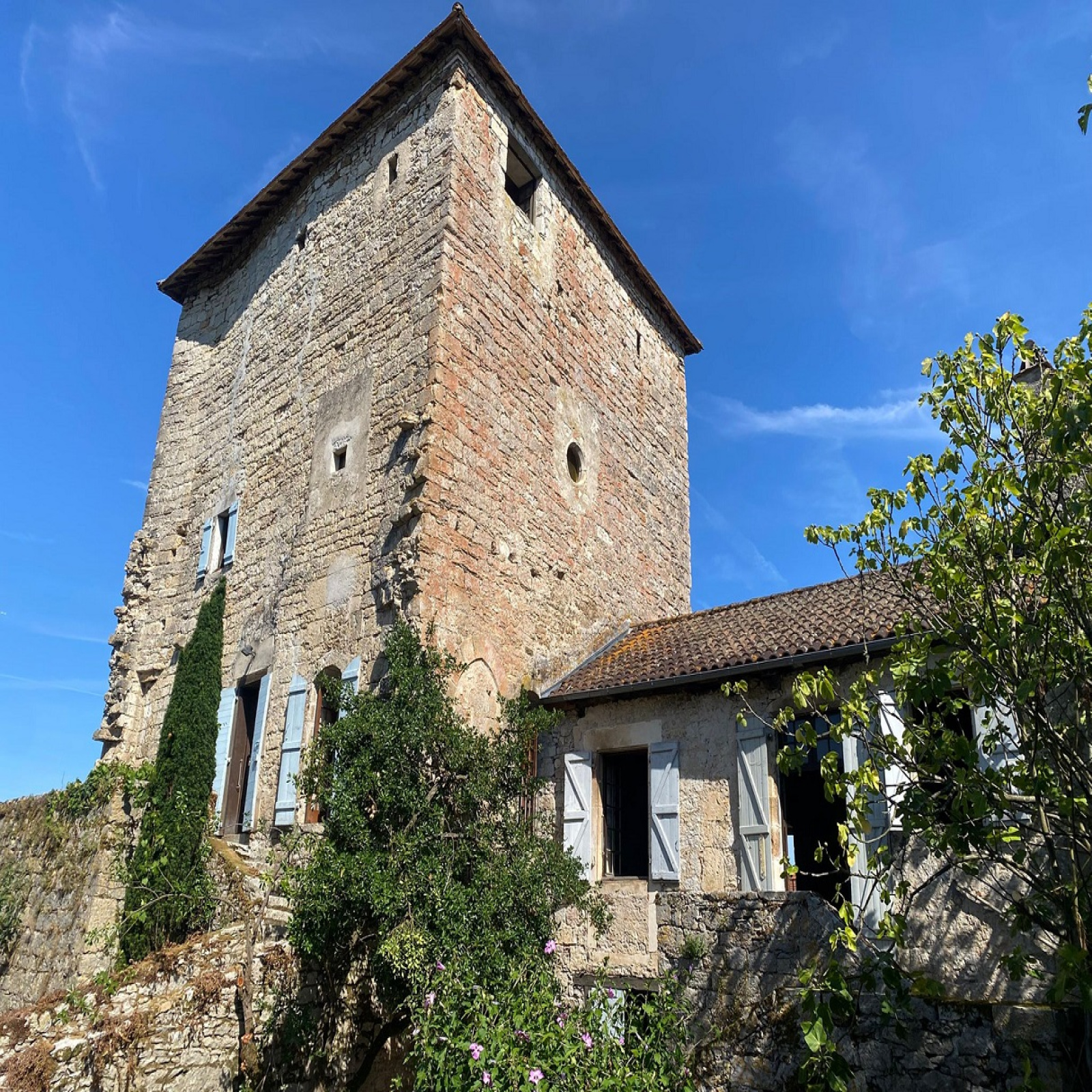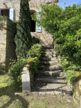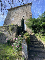 La tour se compose d'une très jolie cave voûtée en plein cintre, surmontée de 3 niveaux d'environ 65m² chacun, que relie un escalier de pierre incorporé au rempart d'origine. Un grenier de même surface, pouvant également être aménagé, domine l'édifice. L'autre bâtiment fait corps à la tour. Il se compose d'une grande pièce de vie d'environ 45m² reposant sur une seconde cave (non voûtée) avec meurtrière en sifflet, s'intégrant également au rempart. Ce dernier se prolonge à l'extérieur, en limite du jardin, avec deux autres archères. Le jardin, arboré, de 300m² environ, et deux terrasses, complètent la propriété et lui assurent un charme indéniable.