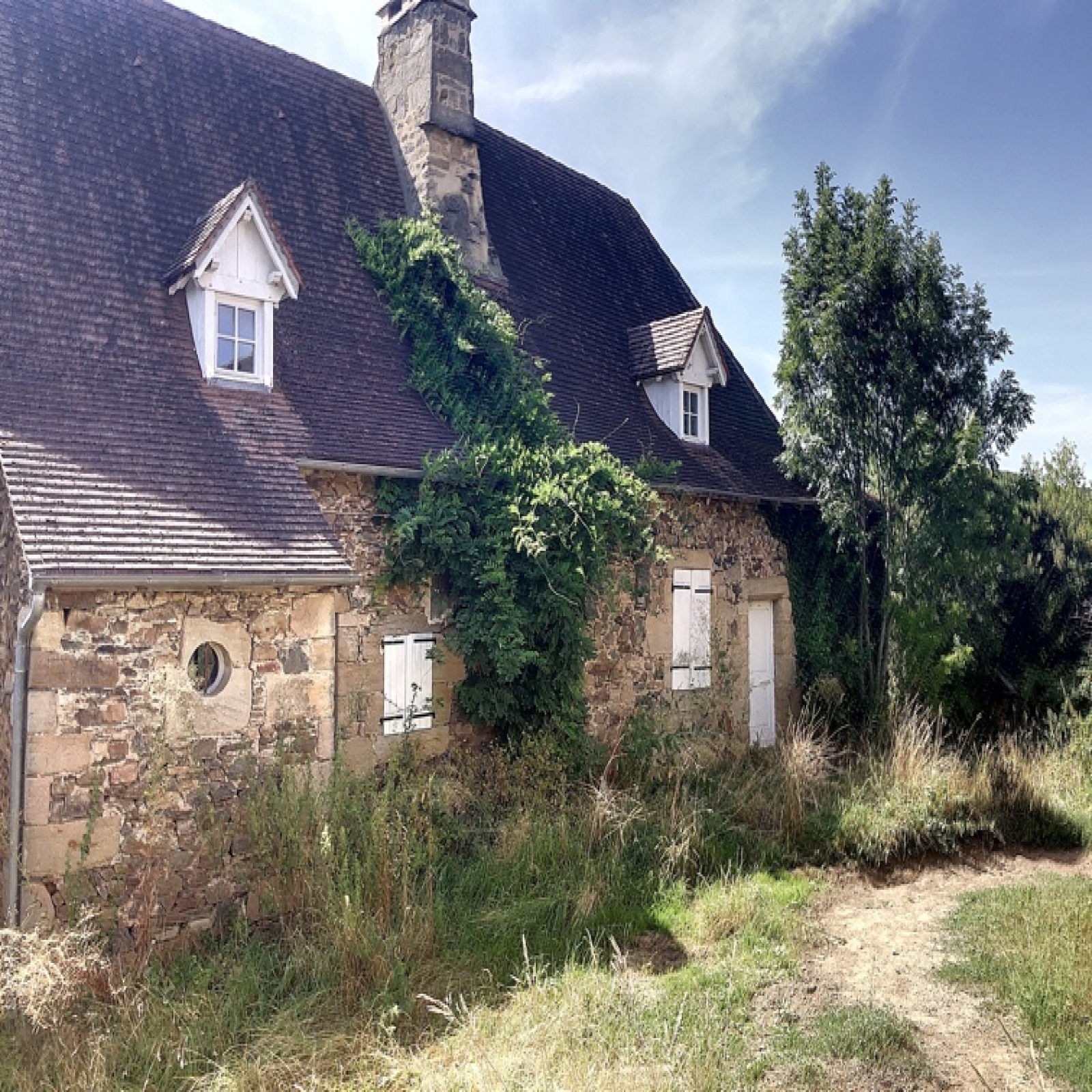 La maison a été en partie rénovée (toiture refaite, portes et fenêtres remplacées, assainissement récent, isolation et aménagement grenier à terminer), le travail est à achever...