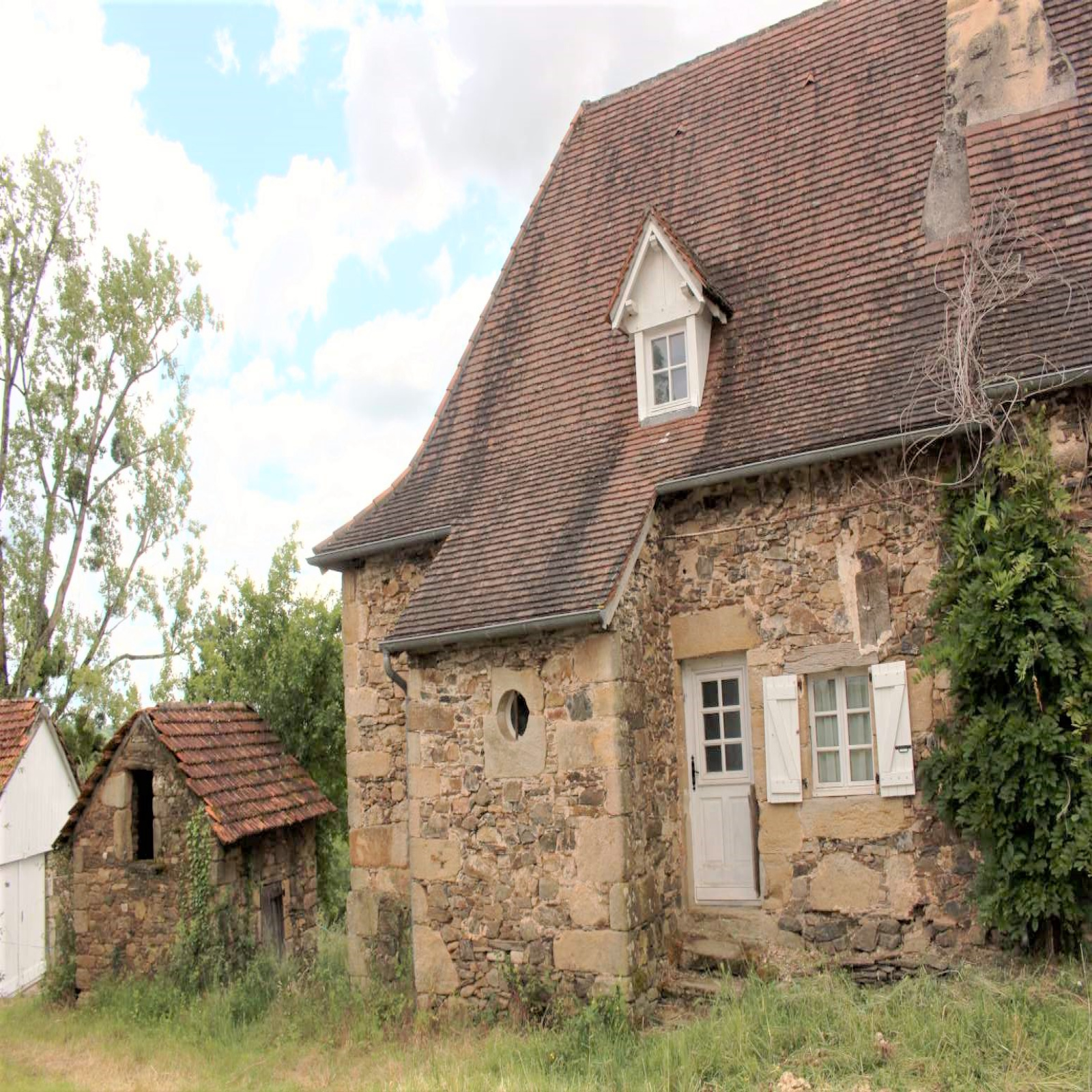 En dépendances : petite grangette à rénover (~25m² par 2 niveaux), gîte en pierre (~30m²)...