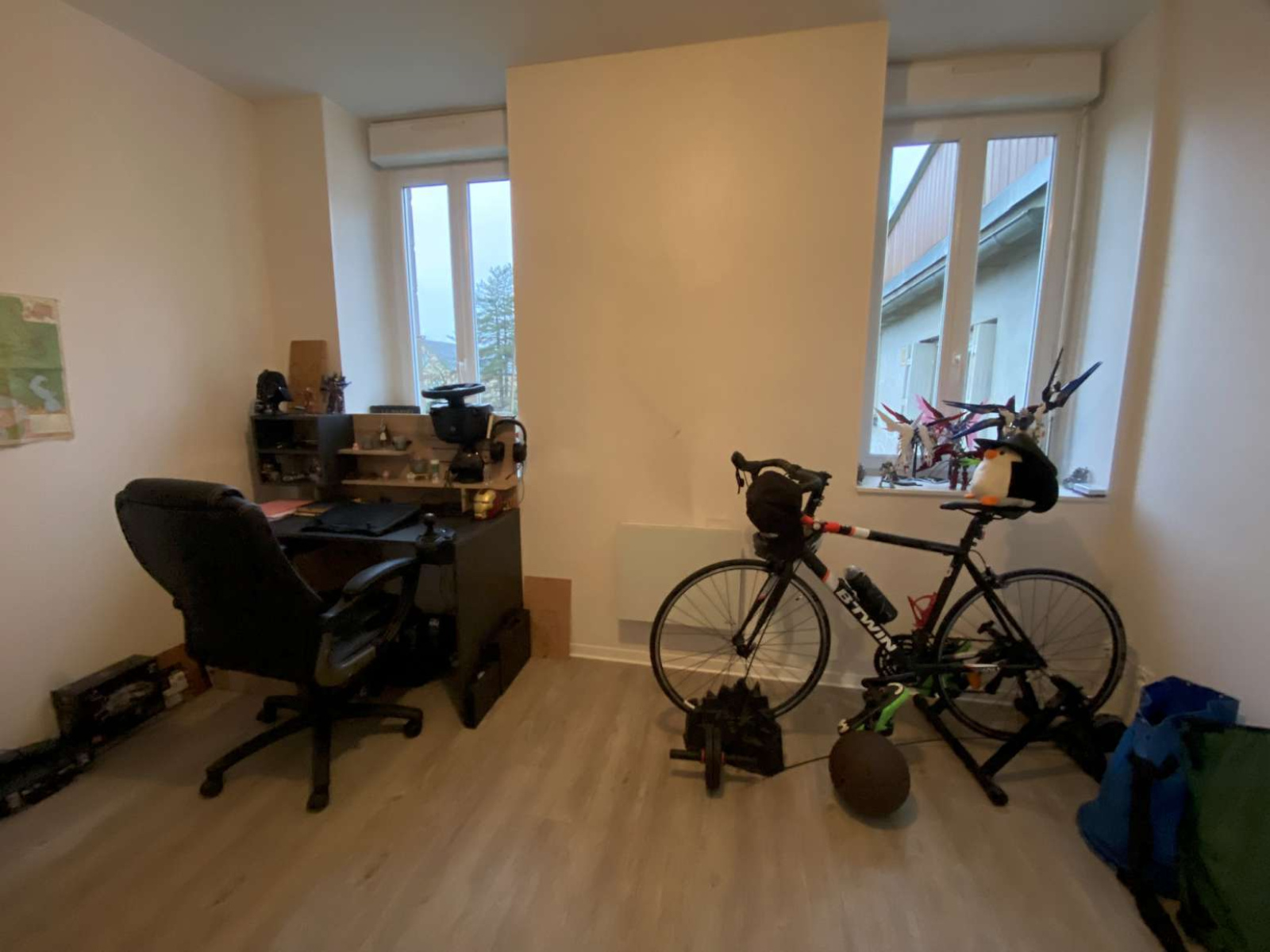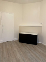 Appartement en rez-de-chaussée (92m²) : salon / pièce à vivre donnant sur rue, avec cuisine ouverte, 3 autres pièces (chambres / bureau), salle d'eau, WC indépendants.