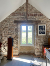 Cette superbe bâtisse est formée d'une aile estimée du 16e siècle, avec un grand salon - bibliothèque de 56m² au sol dallé et à la cheminée de pierre très typiques, reposant sur une cave voûtée tout aussi authentique, une chambre avec salle d'eau / WC et dressing privatifs, une seconde partie datée du 18e siècle, contenant la cuisine - salle à manger, et enfin la dernière partie, plus récente, offrant 2 chambres supplémentaires avec une salle d'eau et WC, desservies par un couloir d'entrée. Tout cet espace habitable est accessible de plain-pied. A l'étage, les combles ont été en partie aménagés pour offrir une grande pièce ouverte complétée par un bureau et une salle d'eau + WC, le reste étant demeuré à l'état de grenier (environ 40m² habitables supplémentaires potentiels). En rez-de-jardin, un grand espace aménagé divisé en plusieurs pièces (cave, atelier, salle de musique) complète l'ensemble, avec la cave voûtée. La maison est en parfait état, ayant toujours été bien entretenue et modernisée au fil du temps.