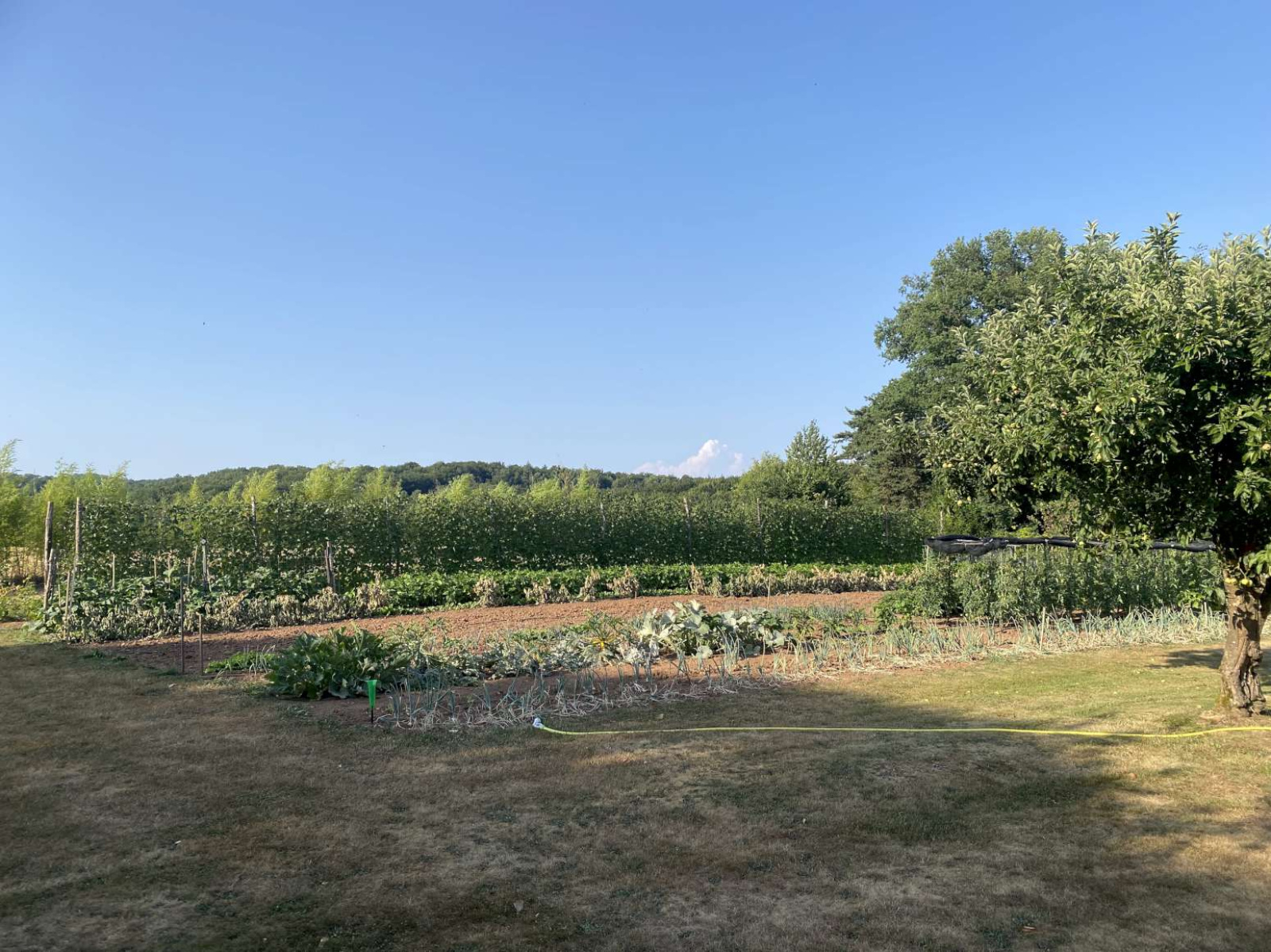 La propriété s'étend sur environ 9000m² de terrain, composé de prairies et bosquets, un grand potager, sans voisins proches hors la ferme voisine.